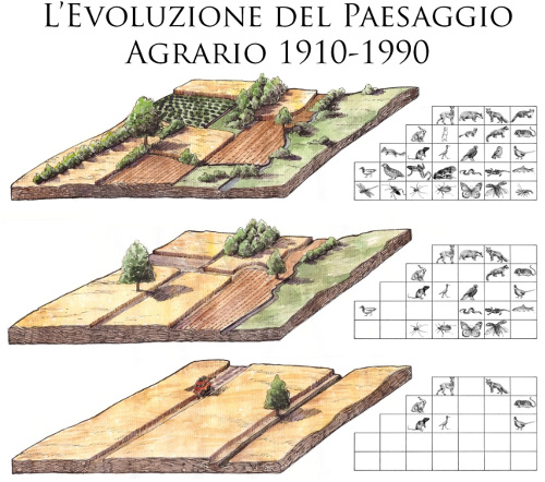 Il bel paesaggio agrario italiano, già campagna frutto di secolari disboscamenti, bonifiche e piantumazioni ordinate, è quasi scomparso lasciando in giro qualche relitto per nostalgici e turisti.